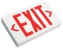is an injection molded, engineering-grade, UV-stable thermoplastic LED exit sign. Features include: snap-fit housing and mounting plate; impact, scratch, fade and corrosion-resistant; dual voltage 120/277VAC; brownout, overload and short circuit protection; maintenance-free 6V sealed lead-calcium battery; standard battery will operate fixture for a minimum of 90 minutes in the event of power outage; 5-year warranty; UL listed.