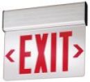 A surface-mount exit light with LED lamps, suitable for applications requiring attractive edge-lit exit signage, universal installation and low energy consumption. Features include: extruded brushed aluminum finish lamp housing; clear thermoplastic panels with precision outline engraved letters measuring 6" high with 3/4" stroke; expected LED life up to 25 years; less than 5 watts for 120V red AC only; battery back-up; top, end or back mounting; UL listed.