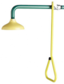 Emergency Shower features an impeller action yellow Cycolac® shower head with a horizontal overhead supply. The unit is activated with a 1" stay-open ball valve operated by a high visibility yellow pull rod. ANSI Z358.1 compliant.
