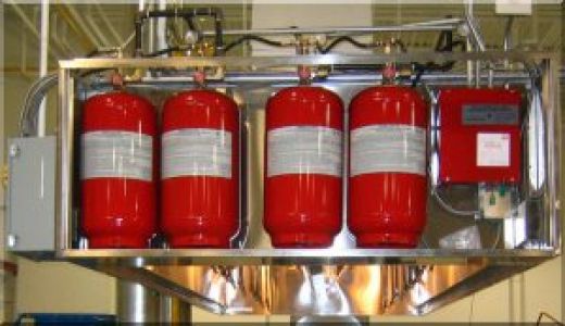 The Amerex KP Restaurant Systemis a pre-engineered, wet chemical, stored-pressure type with a fixed nozzle agent distribution network. The system agent is Amerex KP liquid fire suppressant, a potassium acetate based solution that suppresses cooking grease fires both through saponification and cooling. The agent has a pH of 9 or less and does not harm stainless steel surfaces.